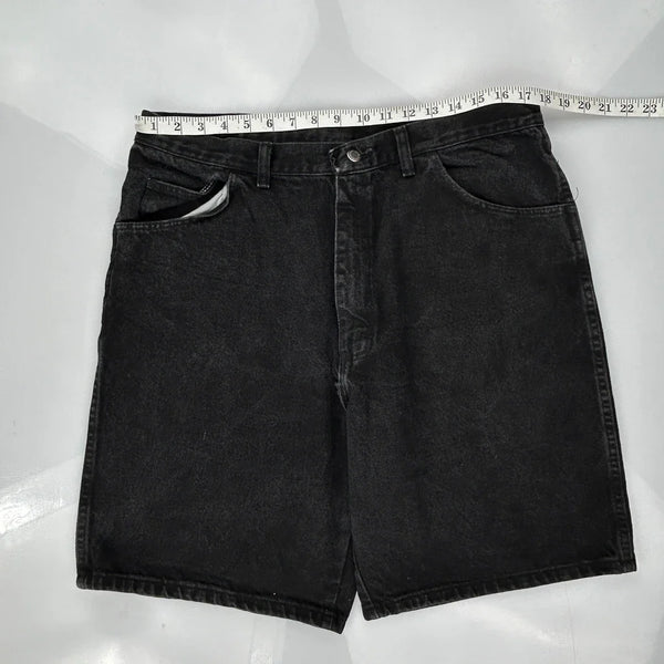 Wrangler Denim Shorts, fit a 34″ Waist and 8″ inseam.