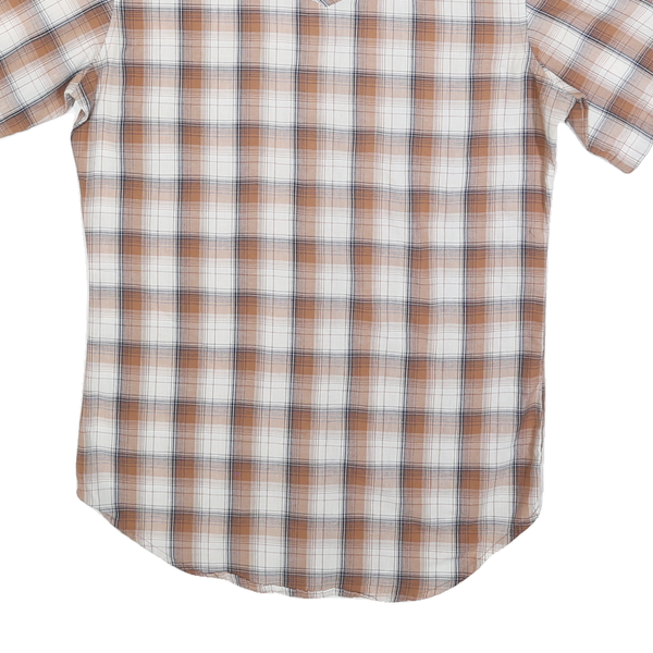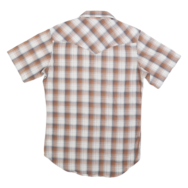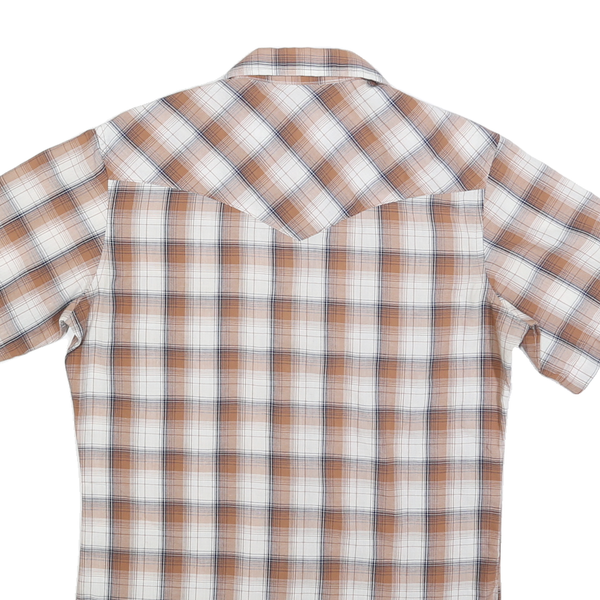WRANGLER Mens Beige Brown Check Western Shirt S Short Sleeve Cotton Blend Button