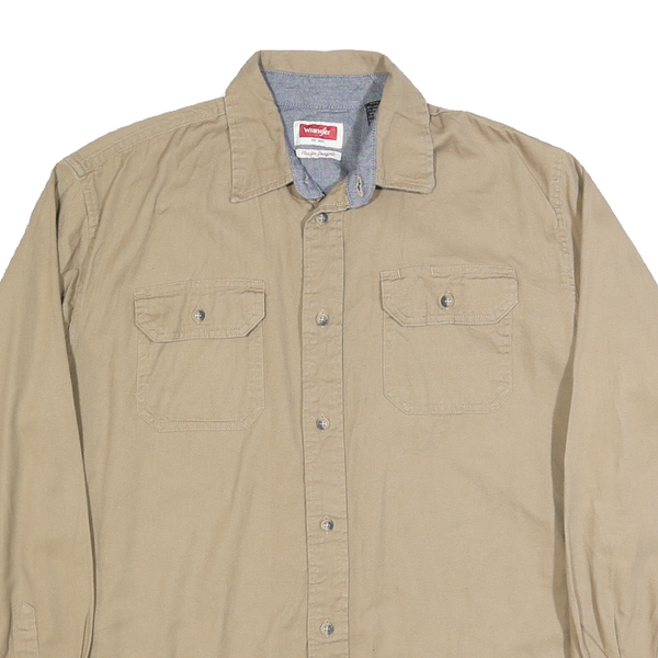 WRANGLER Mens Beige Cotton Blend Casual Shirt M Button Pocket Classic Fit