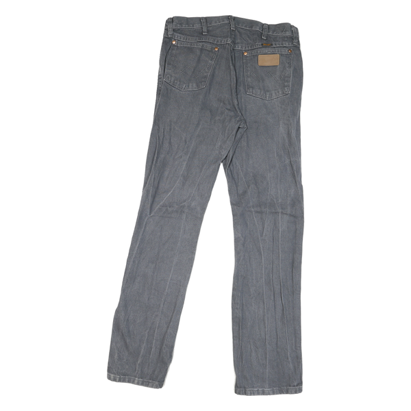 The rear pockets sport the distinctive Wrangler 'W' stitching and a branded leather patch above the right pocket, reinforcing the quality and authenticity of this classic denim piece. Suitable for casual wear or workwear, they combine style with practicality.