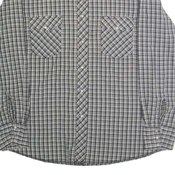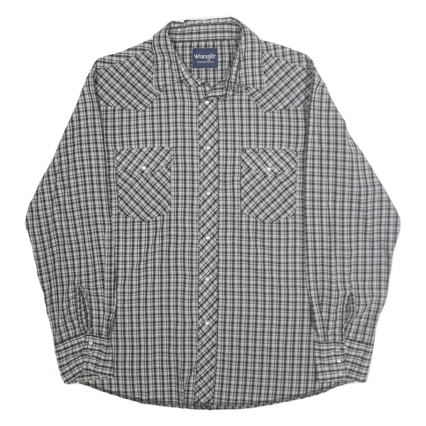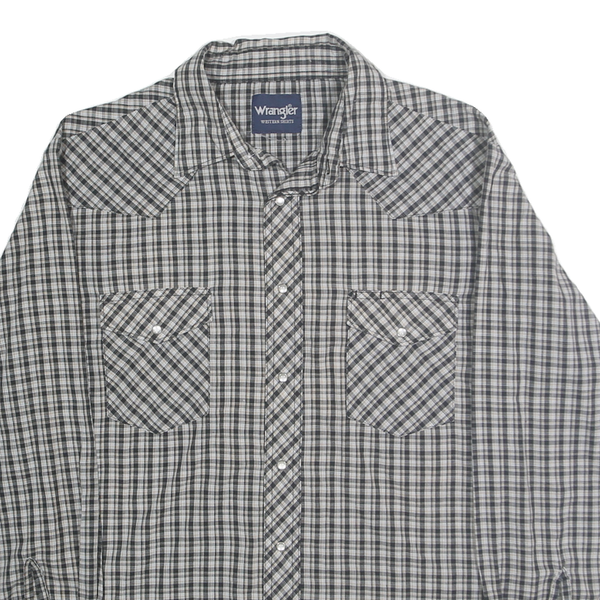 WRANGLER Mens Grey & Black Check Western Shirt L Cotton Blend Casual Classic