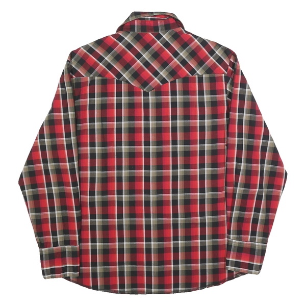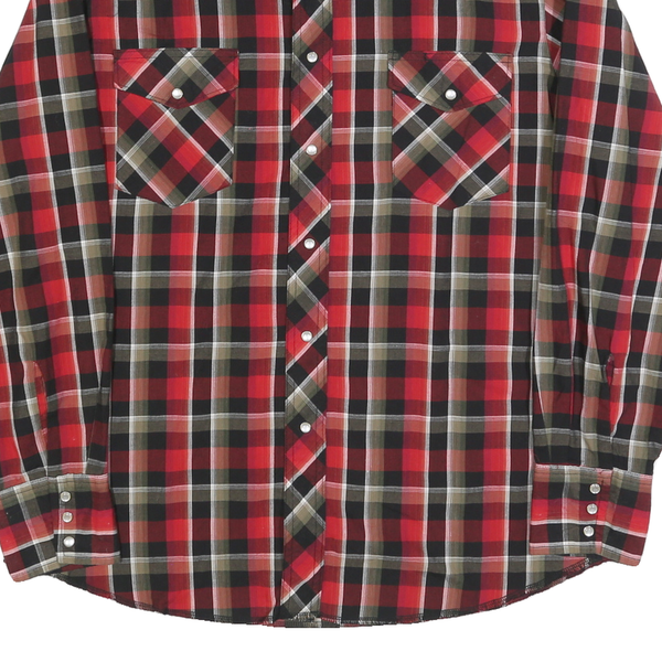WRANGLER Mens Red Black & Brown Check Shirt L Western Style Button Up Long
