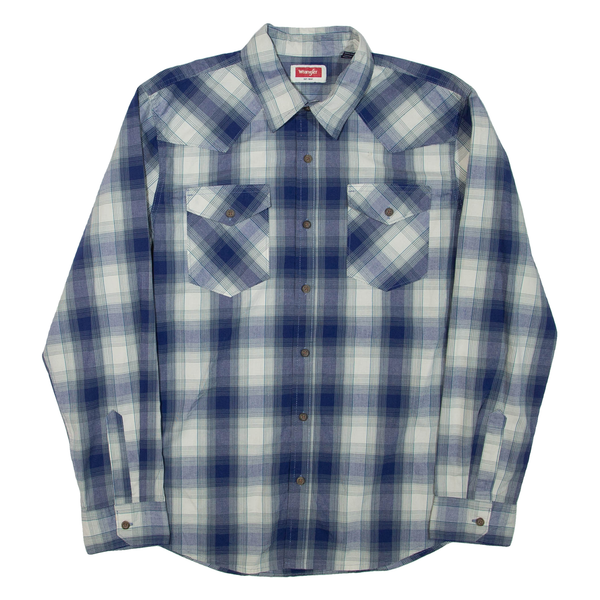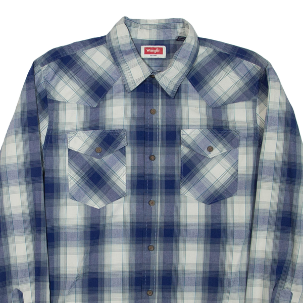 WRANGLER Mens Shirt Blue Check Long Sleeve M