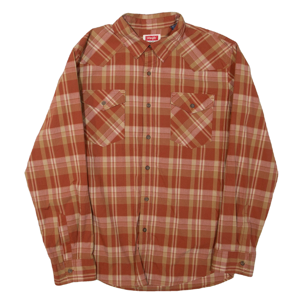 WRANGLER Mens Shirt Orange Check Long Sleeve L
