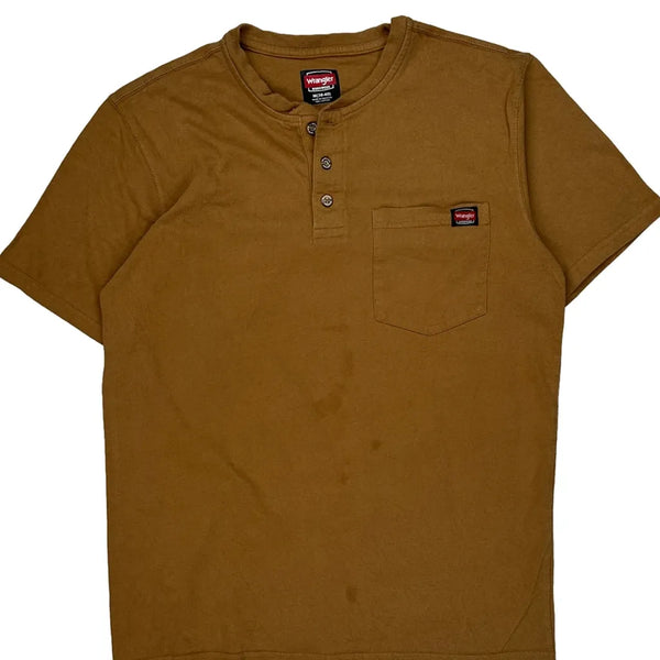 Wrangler Workwear Brown T-Shirt With Front Pocket And Button Details.