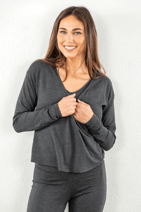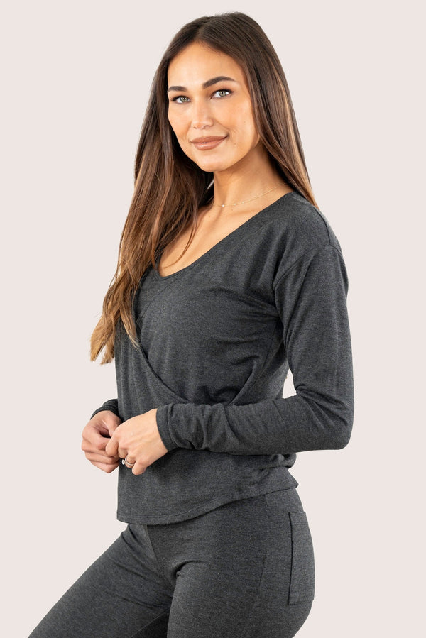 Wrap yourself in effortless style and cozy comfort with the Wrap Star—our long sleeve lounge top designed for those who want to relax in luxury, no bra required. With a chic crossover front reminiscent of a wrap dress, this top flatters while offering just the right amount of coverage.