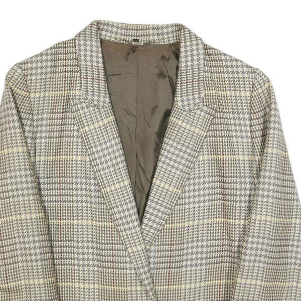 YOUR SIXTH SENSE Womens Brown & Beige Wool Check Button Jacket M Woven Tailored