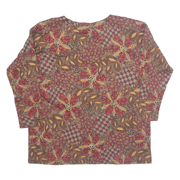 YOUR SIXTH SENSE Womens Printed Blouse Maroon Long Sleeve Crazy Pattern L