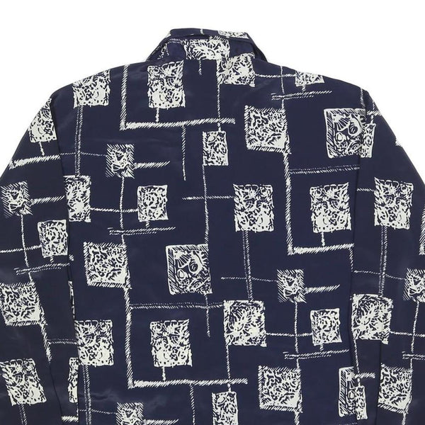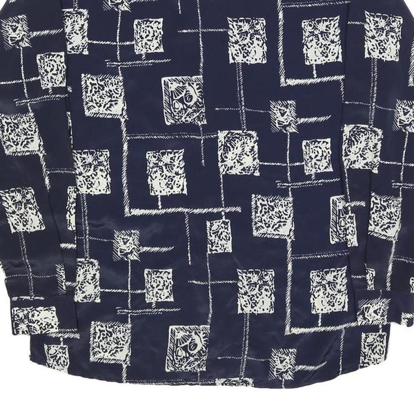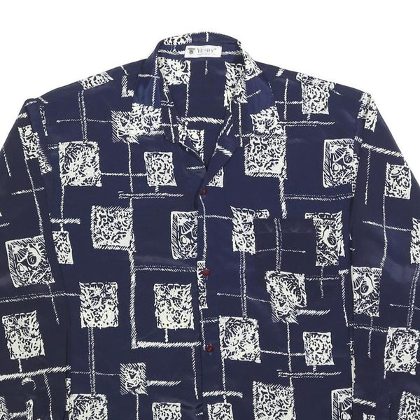 Home YU SHY Mens Navy Blue & White Abstract Pattern Shirt XL Long Sleeve Button