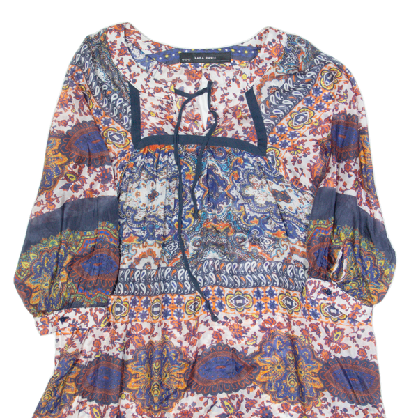 ZARA BASIC Oversized Womens Day Dress Blue Silk Crazy Pattern Short XS
