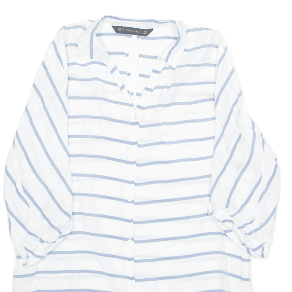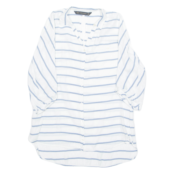 ZARA Hi-low Womens Printed Shirt White Collared Striped XS