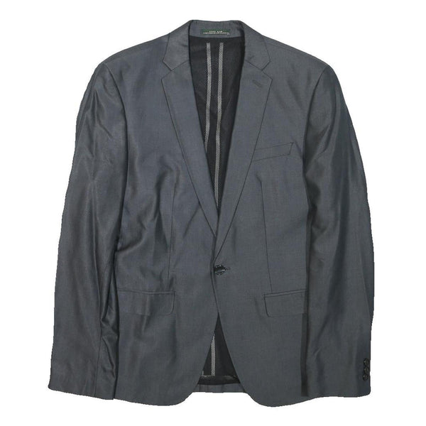 This ZARA MAN mens jacket is crafted in a smart grey colour, offering a sleek and versatile option for formal or professional wear. The jacket presents a tailored slim fit, designed to contour the body neatly without being restrictive. It features a classic single-button closure and traditional lapel collar, adding to its refined aesthetic.