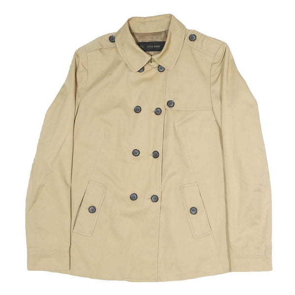 ZARA Womens Beige Button Jacket M Polyester Blend Plain Stylish Casual
