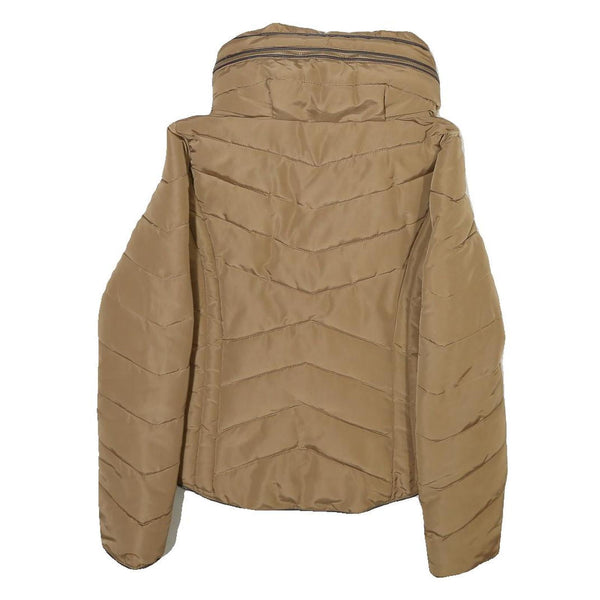 ZARA Womens Beige Polyester Blend Quilted Jacket M Zip Comfort Stylish Outerwear
