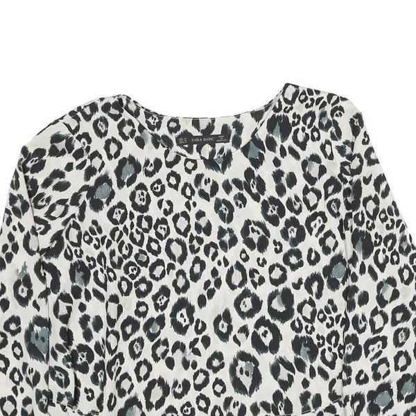 ZARA Womens Black & White Leopard Print Blouse Long Sleeve Round Neck M Stylish