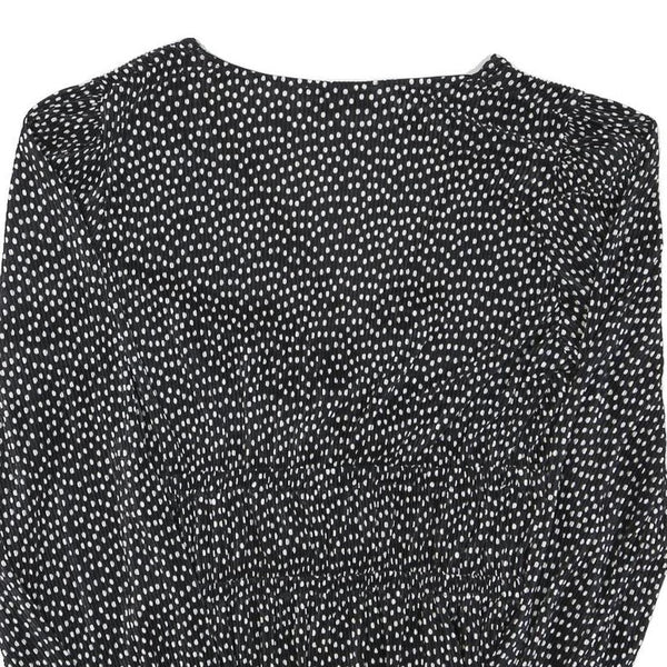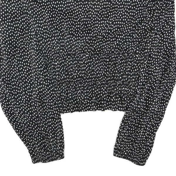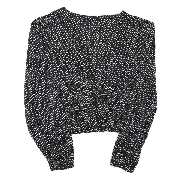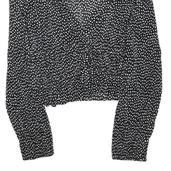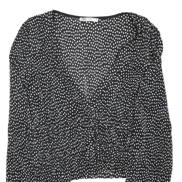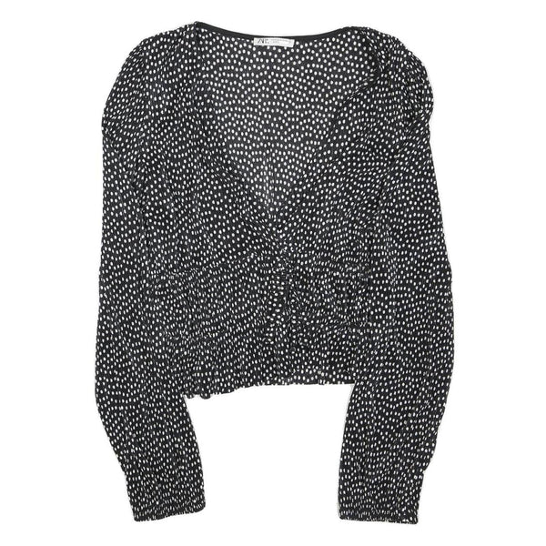 ZARA Womens Black & White Polka Dot Blouse Long Sleeve V-Neck M Stylish Cropped