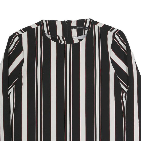 Home ZARA Womens Black & White Striped Top Long Sleeve Round Neck M Stylish
