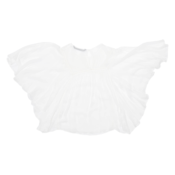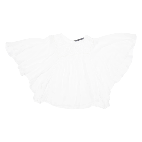 ZARA Womens Blouse White Ruffle Sleeve Viscose Floral M