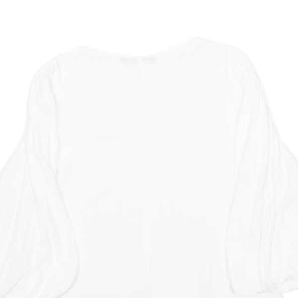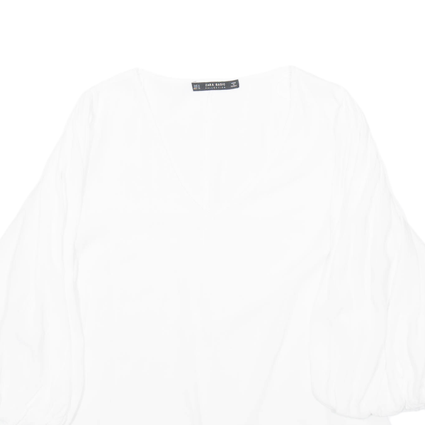 ZARA Womens Blouse White V-Neck Puff Sleeve Viscose M