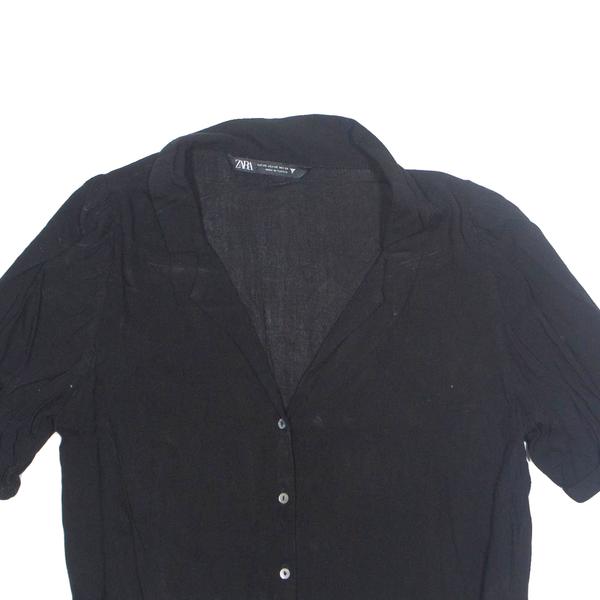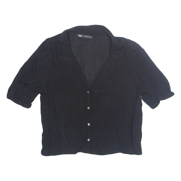 ZARA Womens Cropped Blouse Black Collared Viscose XS