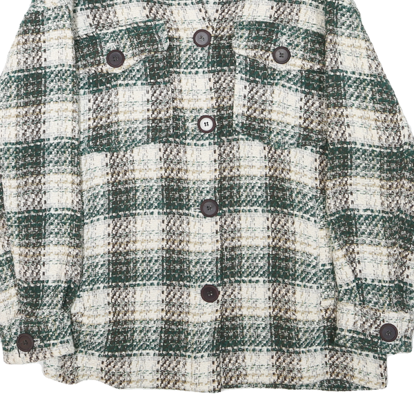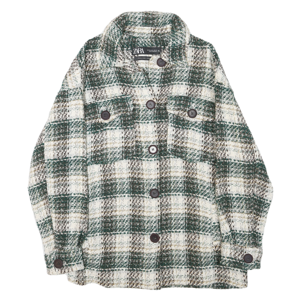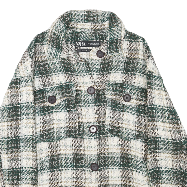 ZARA Womens Green & Cream Checked Button Jacket XS Cotton Blend Woven Stylish