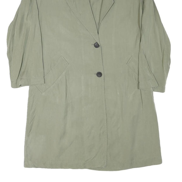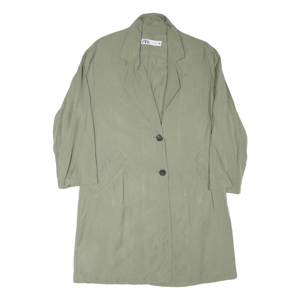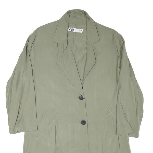 ZARA Womens Green Linen Blend Button Jacket L Plain Lightweight Stylish