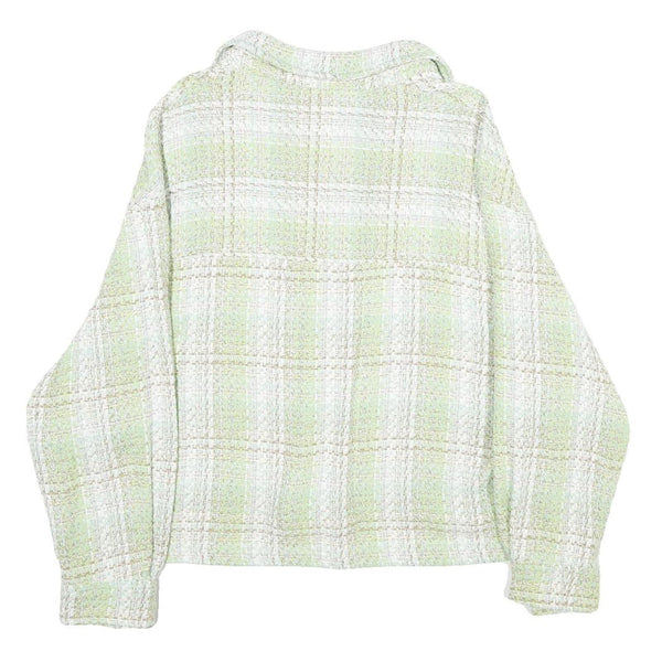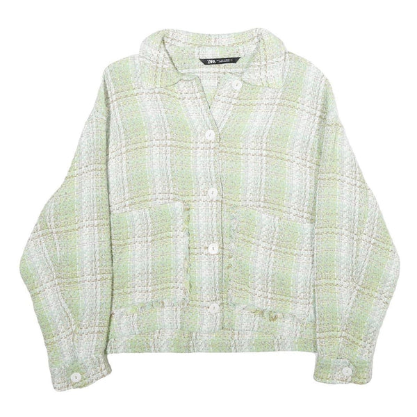 ZARA Womens Green & White Button Jacket M Cotton Blend Check Pattern Stylish