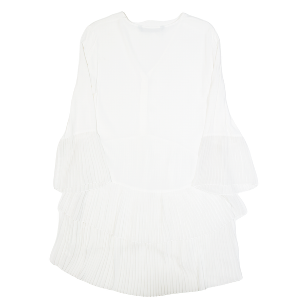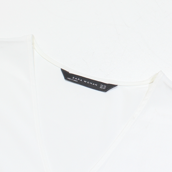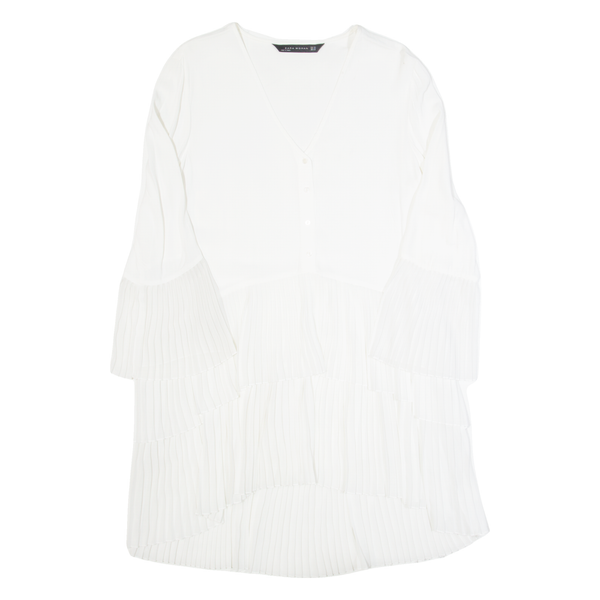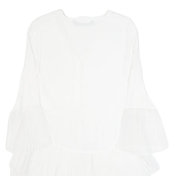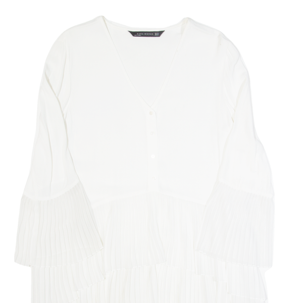 ZARA Womens Smock Blouse White V-Neck Long Sleeve XS