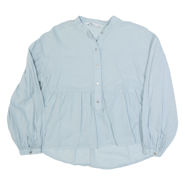 ZARA Womens Smock Top Blue V-Neck Long Sleeve M