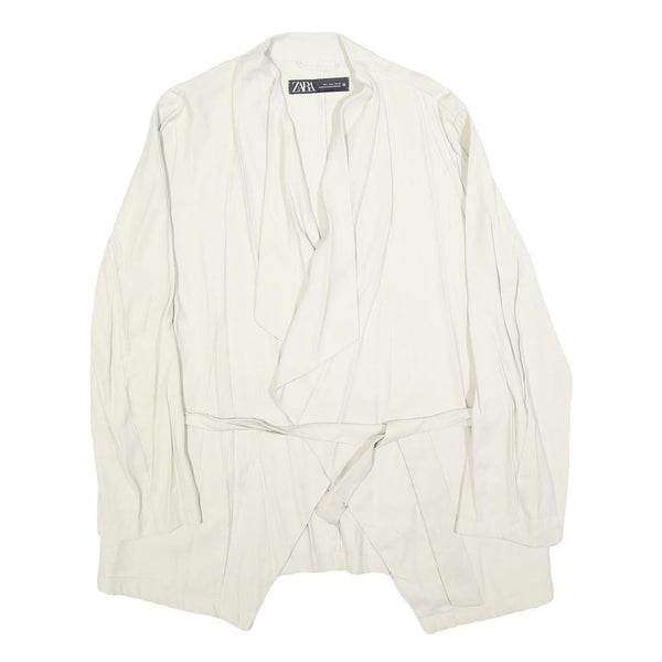 Zara womens white jacket l polyester blend drawstring plain stylish lightweight