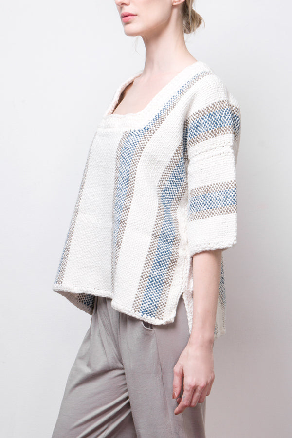 This organic cotton top is completely hand made by Peruvian artisans. Sourcing the highest quality organic cotton yarn to create a hand woven luxurious piece that is consciously made so you can feel good about wearing it. We reach for these luxury pieces on a regular basis since they're part of our everyday staples, and we know you will too.